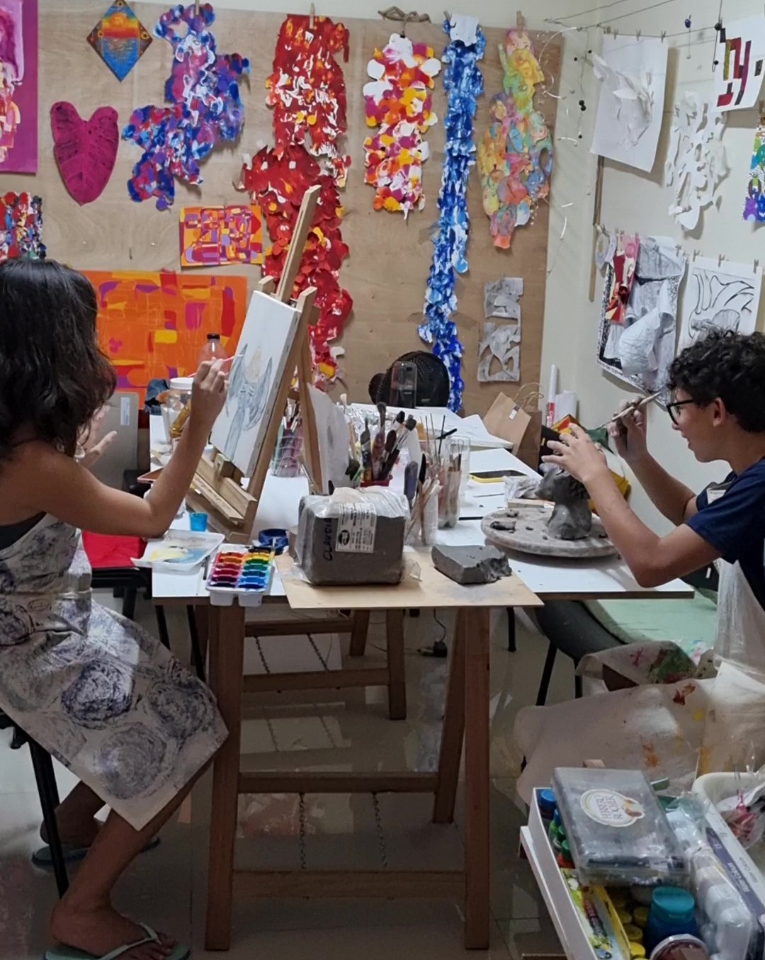 Espaço equipado com os materiais necessários para sua expressão em pinturas, desenhos e esculturas. Desde 2022, cultivamos um ambiente que estimula a investigação criativa e o desenvolvimento de linguagens próprias.